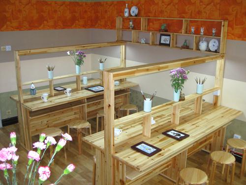簡約的田園格調,寬敞明亮,原木的色調搭配,恬然典雅,將這里宛然隔成另一個藝術天地。來過這的年輕人大多會流連忘返,因為在這里,您可以自己制作并擁有世界上專屬于您的陶藝玩偶和器皿,或是像人鬼情未了中浪漫地在拉坯機上瀟灑制陶。它能讓每個親近它的人,在孩童般信手涂鴉的過程中,在隨心創造的過程中忘卻生活的煩惱與瑣事,遠離工作的壓力和緊張,給心靈以一片寧靜的樂土。