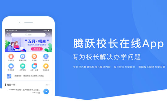 品牌簡介:騰躍校長在線APP一款為民辦教育機(jī)構(gòu)校長提供學(xué)習(xí)內(nèi)容的APP,由騰躍課程研發(fā)團(tuán)隊(duì)打造。旨在提升校長辦學(xué)能力,解決校長在辦學(xué)中遇到的問題。