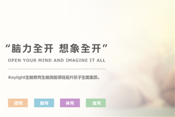 Keylight全腦教育以全人格教育為目標(biāo),強(qiáng)調(diào)對(duì)青少年智能的開發(fā)和心靈的培養(yǎng)。Keylight全腦課程體系由全球?qū)<覉F(tuán)隊(duì)引進(jìn)國際潛能開發(fā)實(shí)踐經(jīng)驗(yàn),結(jié)合中國本土實(shí)際精準(zhǔn)研發(fā)而成,旨在通過對(duì)孩童左右腦潛能的科學(xué)開發(fā),賦予孩子終身學(xué)習(xí)和進(jìn)步的能力,為國家培養(yǎng)棟梁之才。目前Keylight已建立起成熟完善的0-13歲全腦早教體系,一些經(jīng)過全腦腦力訓(xùn)練的小學(xué)員已成功入選江蘇衛(wèi)視《最強(qiáng)大腦》人才庫,初步完成在全國七大區(qū)的全腦戰(zhàn)略布局。