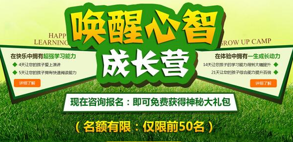 引爆學習能力:將培、訓、練、用融為一體,重在提高孩子的記憶能力、閱讀能力、寫作能力、演講能力等,讓孩子在快樂的體驗中獲得能力打造。