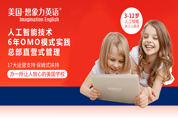 2014年,美國想象力英語正式登陸中國,總部匯聚一大批英美教育專家、海歸精英、名校資深教授,團隊人數近200人。通過線上智能系統與線下精準教學完美結合,為3至15歲的中國孩子帶來“隨時隨地立享美國課堂”的全新英語學習體驗。除了英語學習之外,想象力英語著重培養孩子的自主學習能力、邏輯思維能力、社交溝通能力;同時還致力于培養孩子“關愛(care)、積極(Positivity)、毅力(Grit)、責任(Responsibility)”的四大品格,幫助其成為更優秀的人。截止目前,品牌已在幼少兒英語教學領域取得卓越成效,合作伙伴覆蓋全國32個省市,合作校數量超過500家,全國多家機構、幼兒園、小學使用想象力課程。