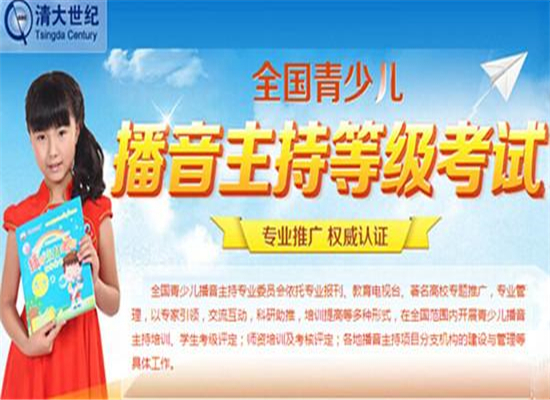 清大世紀播音主持考級培訓隸屬于北京清大世紀教育投資顧問有限公司,是清大世紀傾力打造的重點項目,提供全國青、少、兒語言教學和播音主持專業(yè)教育服務,經(jīng)過統(tǒng)一考試,頒發(fā)由廣電總局認證的等級證書。主要在全國省、市、縣設立考試、教學中心,為學生提供語言類的學習輔導與考試服務。清大世紀播音主持考級培訓招商總部以“專注教育服務,專業(yè)服務教育”為企業(yè)理念,致力于打造中國教育資源最全、受眾群體最大、服務質(zhì)量最好的“終身學習平臺”。