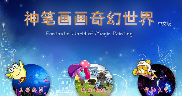 “神筆畫畫”總共有三個場景,分別是多彩海洋、歡樂大地、神秘太空。三個場景可以通過電腦操作自由切換。當打開電腦進入“神筆畫畫”程序時,進入場景選擇界面,用鼠標選擇對應場景即可。